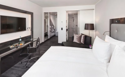 In der Wolfsburg Bay erwarten dich moderne, stilvoll eingerichtete Zimmer mit ergonomischen Arbeitsbereichen, schnellem WLAN und Panoramafenstern, die einen Blick auf die Autostadt oder die urbane Skyline bieten. Nach einem produktiven Tag kannst du dich im Wellnessbereich entspannen oder die gehobene Küche im hoteleigenen Restaurant genießen. Wolfsburg Bay ist der perfekte Ort, um Arbeit, Komfort und Erholung zu verbinden.